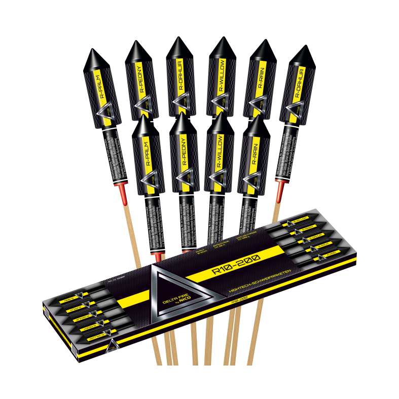 In diesem Paket erhalten Sie 10 Feuerwerksraketen von der Firma Nico. Zehn hochwertige Schweifraketen mit maximaler Explosivmasse. Dieses Premium-Raketen-Sortiment eignet sich wegen der starken und großen Effekte besonders für Silvester, damit können auch Enthusiasten die wunderschönen Effekte genießen. Es handelt sich hierbei um ein Produkt aus der Delta Fire-Serie.